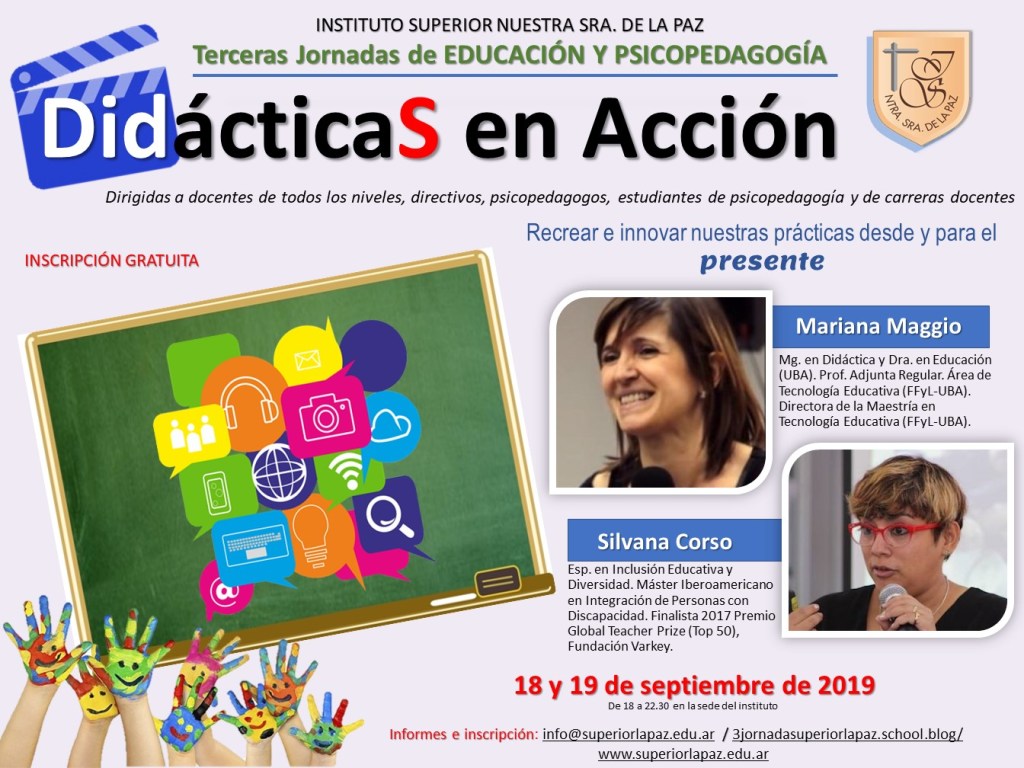 Las jornadas se desarrollan en la sede del Instituto Superior Nuestra Sra. de la Paz: Av. Piedrabuena 3595, CABA, los días 18 y 19 de septiembre de 18 a 22hs.